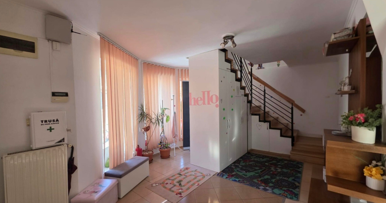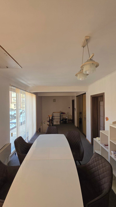 Iti ofer spre închiriere o casă individuală situată în Cluj-Napoca, pe strada Jan Hus nr. 16, amplasată pe un teren de 349 mp. Proprietatea, cu regim de înălțime P+E și o suprafață construită la sol de 86 mp, a fost extinsă în 2005 și este finisată modern, fiind optim amenajată pentru activitatea de centru educational. Parterul cuprinde o cameră de zi, bucătărie, cămară și baie, în timp ce etajul găzduiește două dormitoare, fiecare dotat cu baie proprie, plus un dressing și balcon. Imobilul este versatil, fiind disponibil atât pentru persoane fizice, cât și pentru persoane juridice, reprezentând o soluție excelentă atât pentru locuit, cât și pentru sediu de firmă sau activități educaționale. Pentru cei ce doresc preluarea afacerii cu clientii existenti este disponibila imediat, altfel fie catre rezidential sau alt tip de firma din septembrie.