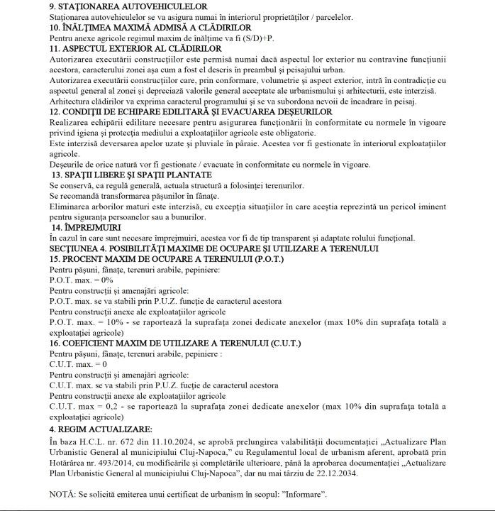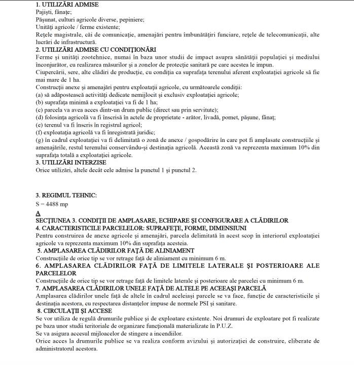 Construibil Conform PUG, se permit anexe agricole/case de vacanță (regim S/D+P) cu o amprentă la sol de până la 800 mp (POT 10%).